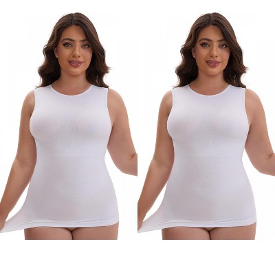 INSPIRE CHIC Women's Tummy Control Slimming Waist Shaper Crew Neck Traceless Sleeveless Long Tank Undershirt 2 Packs