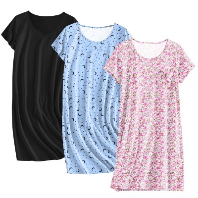 Ekouaer Nightgowns for Women Short Sleeve Long Nightgown Lounge Soft Night Dress Adult Crew-neck Sleepwear