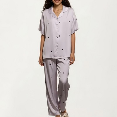 Anna-Kaci Lounge Women's 2-Piece Set Pajama Short Sleeve Button Down Top with Notch Collar and Relaxed Fit Pants Sleepwear Set