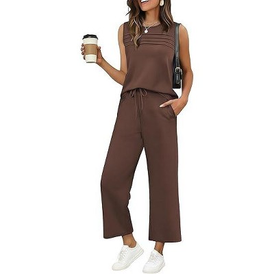 Ekouaer Two Piece Summer Outfits 2 Piece Sets Cruise Lounge Set Sleeveless Tank & Shorts Pajama Set with Pockets
