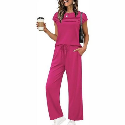 INSPIRE CHIC Women's Y2K 2 Pcs Loungewear Jersey Knit Cute Floral Short Sleeve V Neck Elastic Waist Pants Casual Pajama Set