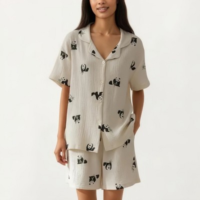 Anna-Kaci Lounge Women's 2-Piece Set Short Sleeve Button Down Pajama Top with Notch Collar and Relaxed Fit Shorts