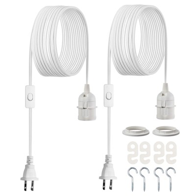 VEVOR Plug in Hanging Light Cord Kit, 16ft Lantern Extension Cords, 2 Pack E26 Light Socket Lamp Cord Replacement, Secure & Sturdy, White
