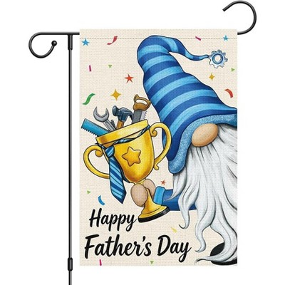Lomsoe Happy Father's Day Garden Flag Blue Gnome Yard Flag Summer Seasonal Farmhouse Outside Outdoor Decor Father's Day Decor 12x18 Inch