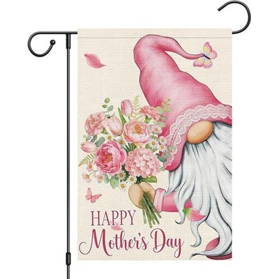 Lomsoe Happy Mother's Day Garden Flag Pink Floral Gnome Yard Flag Summer Seasonal Farmhouse Outside Outdoor Decor Mother's Day Decor 12x18 Inch