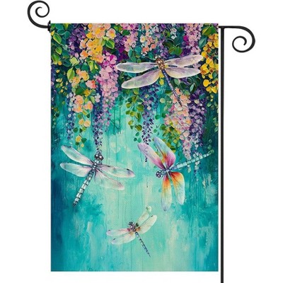 Lomsoe Spring Summer Floral Garden Flag Dragonfly Welcome Flag Front Yard Sign Summer Seasonal Farmhouse Outside Outdoor Decor 12x18 Inch