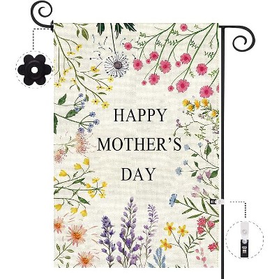 Lomsoe Happy Mother's Day Garden Flag Flower Floral with Butterful Yard Flag Memorial Gift for Mama Mom Grandma Mother's Day Decor 12x18 Inch