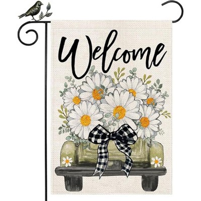 Lomsoe Welcome Garden Flag Daisy Truck Garden Flags Welcome Sign Spring Summer Floral Flag Farmhouse Rustic Outdoor Outside Yard Decor 12x18 Inch