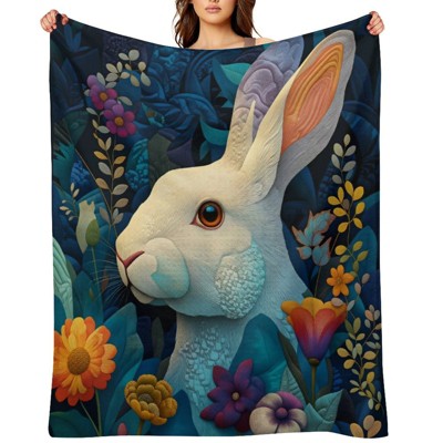 Boho Artistic Easter Bunny Flannel Blanket, Cozy Warm Throw for Spring Snuggling & Lounging 40x50 inches