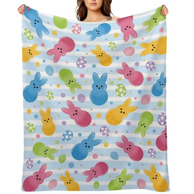 Easter Peeps Bunny Flannel Blanket, Cute Rabbit Easter Eggs Throw Blanket Gifts, Colorful Polka Dot Spring Soft Blanket 40x50 inches