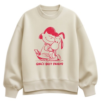Women's - Peanuts - Girl's Best Friend Lucy & Snoopy Oversized Fleece Crew Sweatshirt