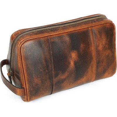 Large Travel Toiletry Bag - Carbon Fiber & Leather, Water-Resistant Dopp Kit for Bathroom & Shaving, Black