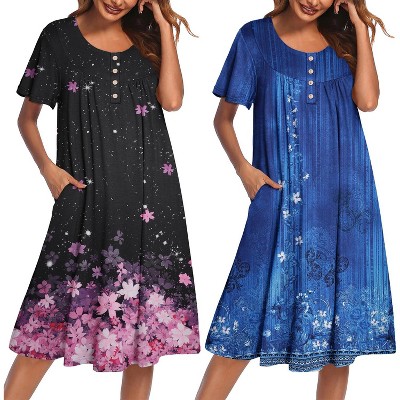 Ekouaer 2 Pack House Dresses for Women with Pockets Short Sleeve Moomoo Nightgown Plus Size Mumu Floral Lounge Dress