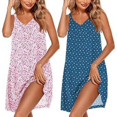 Ekouaer 2 Pack Nightgown for Womens Nightshirt Sleepwear Sleep Tank Chemise Racerback Sleeveless Dress