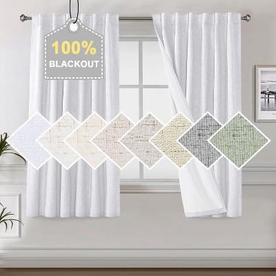H.Versailtex Faux Linen 100% Blackout Back Tab Rod Pocket Curtains with White Liner Sold of 2 Panels