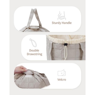Narwey Lay Flat Open Drawstring Makeup Bag, Large Quilted Cosmetic Bag for Women Girls, Cute Make up Bags