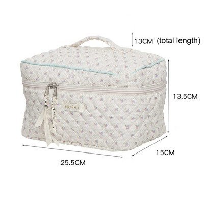 Narwey Kawaii Cotton Makeup Bag Large Travel Cosmetic Bag Quilted Coquette Makeup Pouch Aesthetic Floral Toiletry Bag