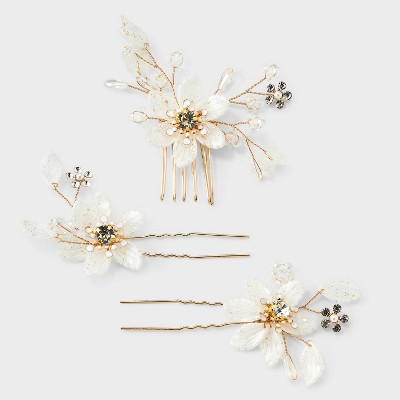 Flower Cluster Hairpins 3pc Set - A New Day™ Gold
