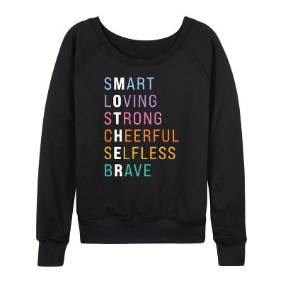 Women's - Instant Message - Mom Characteristics Circle Lightweight French Terry Wide Neck Long Sleeve Graphic Shirt