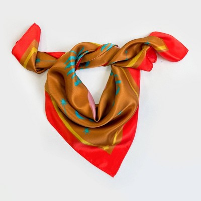Allegra K Women's Soft Square Neck Scarves Multi Pattern Neckerchief Red White Stripes 19.6"x19.6"