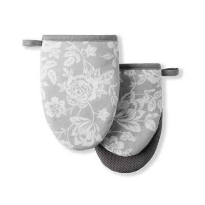 Martha Stewart Floral Vine Mini Oven Mitt 2-Pack Set, Grey, 5.5"X8"