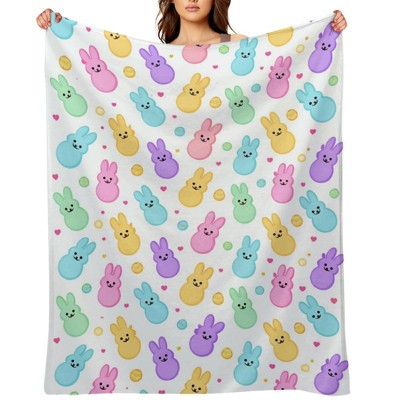 Easter Flannel Blanket Throw, Pink Rabbit Bunny Easter Eggs Flower Leaves Cross Soft Fuzzy Plush Cozy Blankets for Couch Sofa Bed 50x60 inches