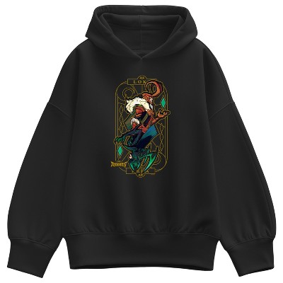 Women's Marvel Loki Hera Tarot Card Oversized Fleece Hoodie Sweatshirt - Black - X-Large