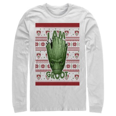 Men's Marvel Ugly Christmas Guardians of the Galaxy Groot Portrait Long Sleeve Shirt