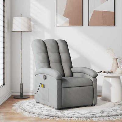 vidaXL Light Gray Fabric Massage Recliner Chair - Manual Tilt, Vibrating Home/Living Room Lounger with USB, Comfy Armrest, Side Pocket - Gray