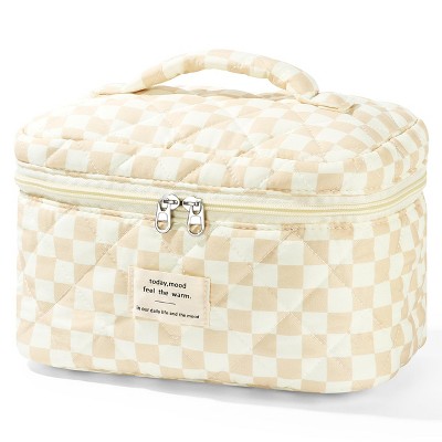 Narwey Quilted Makeup Bag - Cute Checkered Cotton Makeup Bag, Large Coquette Aesthetic Make up Cosmetic Bag