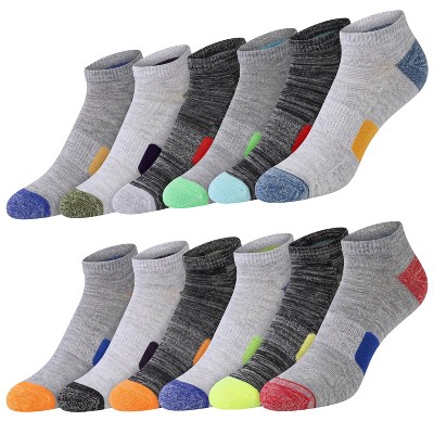 JAMES FIALLO Men's 12-Pairs Performance Monochrome Black Vibrant Toe and Heel Pops Good Feel Low Cut Sports Socks
