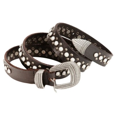 Loyal West Womens Midnight Ranger Studded Leather Belt In Calfskin