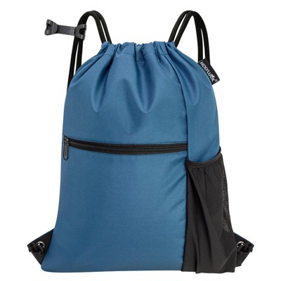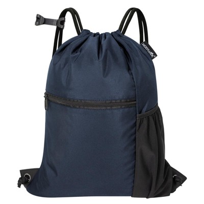 Drawstring Backpack Bag, Waterproof Draw String Back Sack with Zip Pocket, Gym Drawstring Bags Swim Bag for Men Women (Navy Blue, Upgraded) One Size