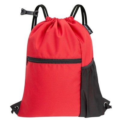 Drawstring Backpack Bag, Waterproof Draw String Back Sack with Zip Pocket, Gym Drawstring Bags Swim Bag for Men Women (Rose Red, Ordinary) One Size