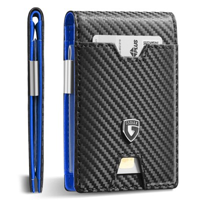 Narwey Men's Slim RFID Blocking Leather Wallet with Money Clip | Minimalist Carbon Fiber Bifold Credit Card Holder