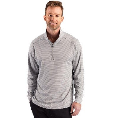 Cutter & Buck Forge Recycled Double Stripe Four-Way Stretch Mens Quarter Zip Pullover - Polished/White - S