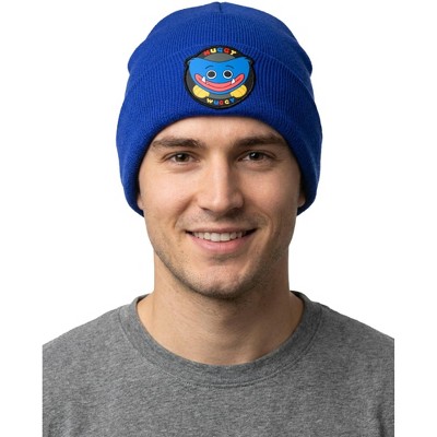 Poppy Playtime Huggy Wuggy Embroidered Patch Knit Cuff Beanie Hat Blue