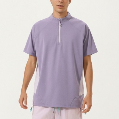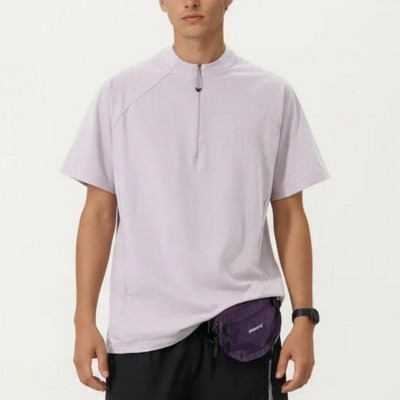 Alilang Men's Short Sleeve Athletic T-Shirt with Half Zip Mock Neck Lightweight Breathable Performance Fabric