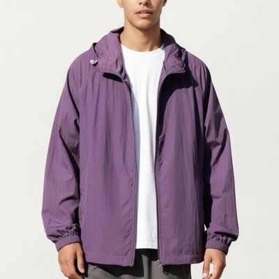 Alilang Men's Lightweight Windbreaker Jacket with Hood Full Zip Closure Drawstring Detail and Zipper Chest Pocket Design