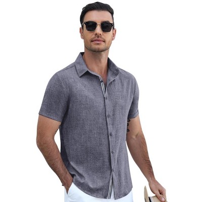 Men's Short Sleeve Button Down Summer Shirts with Patterned Placket -COOFANDY