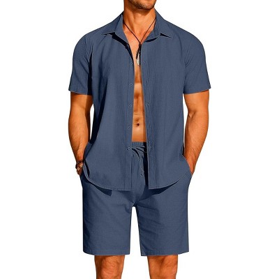 COOFANDY Mens Beach Outfits 2 Piece Sets Casual Short Sleeve Button Down Summer Textured Shirt