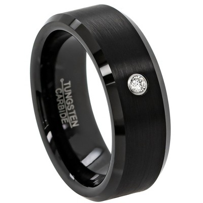 Jewelry Avalanche Mens Diamond Wedding Band Black Beveled Tungsten Carbide, Comfort-fit, 8mm
