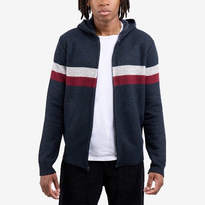 X RAY Full Zip Hooded Sweater With Stripes & Faux Shearling Lining
