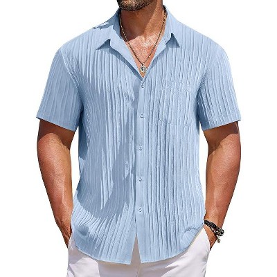 COOFANDY Mens Casual Button Down Shirts Short Sleeve Textured Shirt Summer Beach Shirts for Men