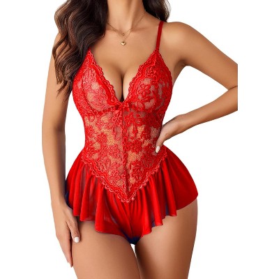 Avidlove Teddy Lingerie for Women Lace Bodysuit One Piece Babydoll Mesh Chemise V Neck Sleepwear