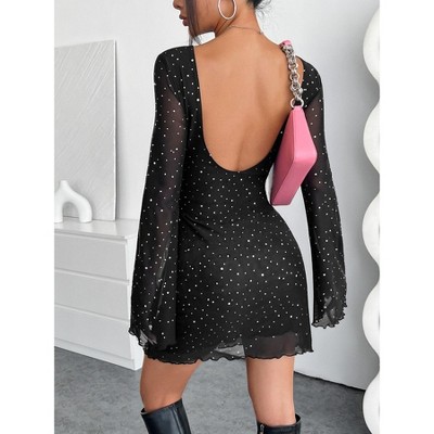 Women's Sheer Mesh Sequined Backless Slim Fit Long Sleeve Dress