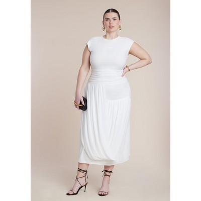 ELOQUII Drape Detail Fitted Mesh Dress