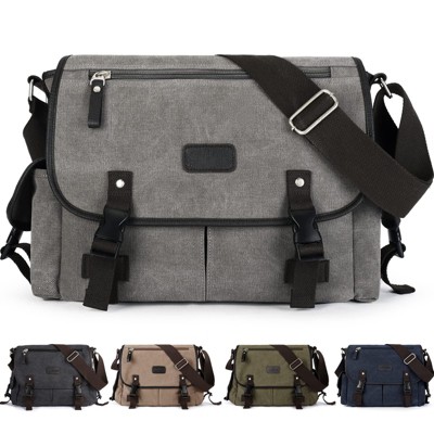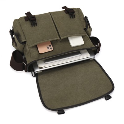 Narwey Canvas Shoulder Bag for Mens Multi-pockets 13 inch Laptop Messenger Bag