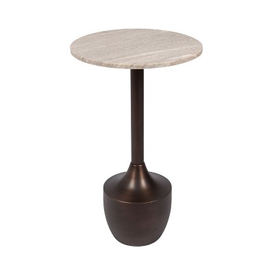 Kate and Laurel Dumont Marble and Metal Side Table, Brown Marble and Bronze, 14x14x24