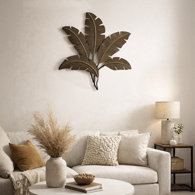 Royal Hampton 35 Inch Tropical Metal Palm Leaf Wall Mount Accent Decor with Brushed Detailing, Brushed Green